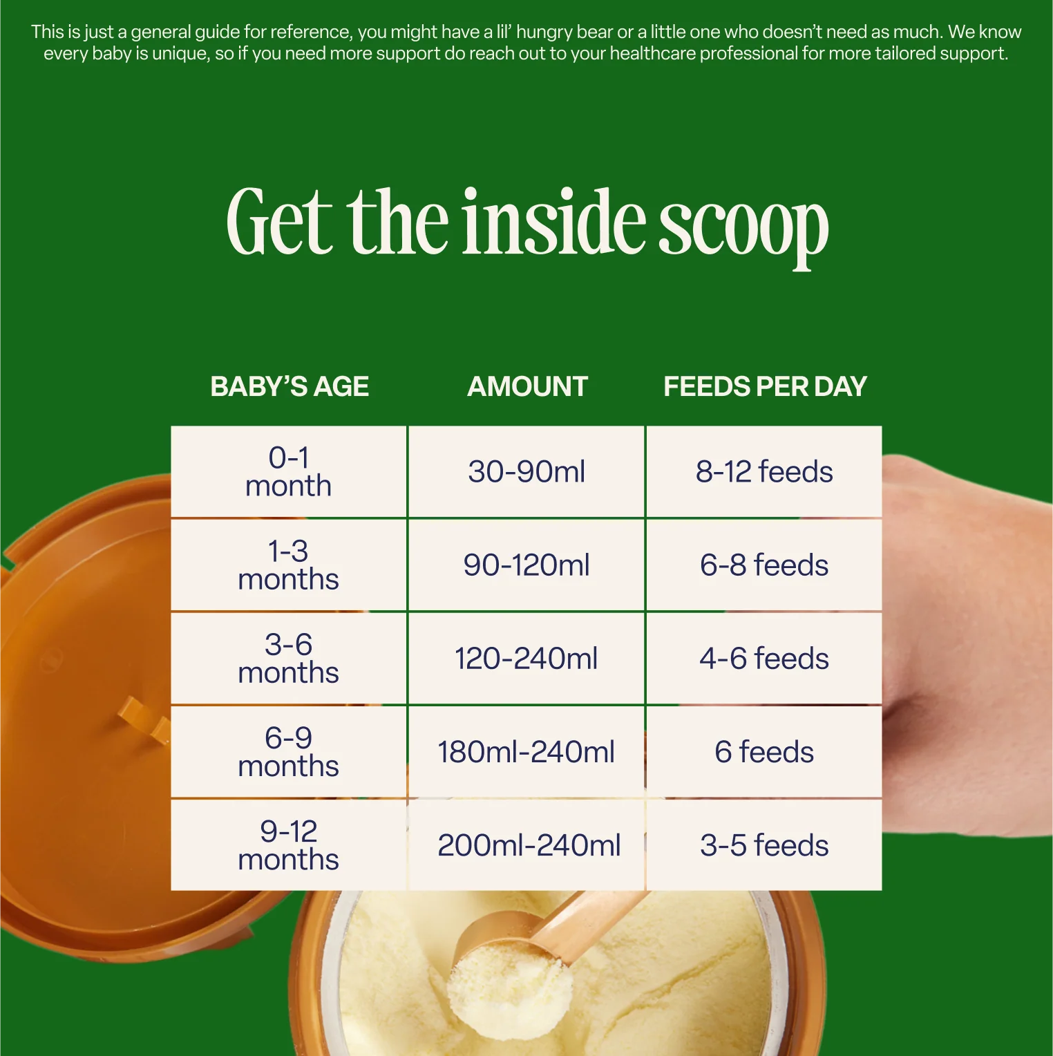 Add 1 level scoop of Kendamil Organic Toddler Milk powder to each 30ml of waterª. Your baby will need about 2-3 servings per day as a drink or in food. If you need more advice talk to your healthcare professional.